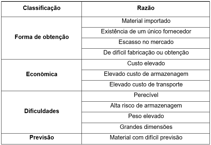 A partir da identificação dos itens se define políticas de controle, estoques de segurança, ponto de pedidos em função de sua classificação.