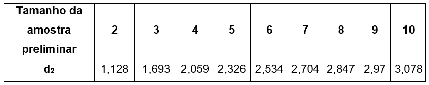 Tabela 6.1 – Coeficiente d2 dado em função da amostra preliminar