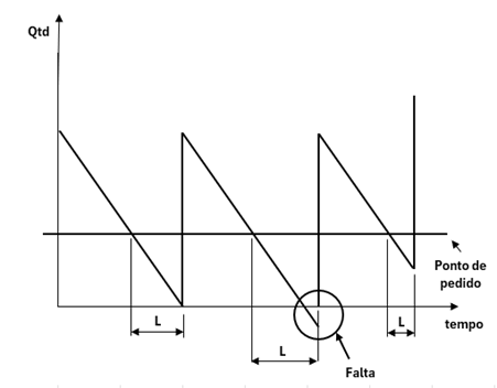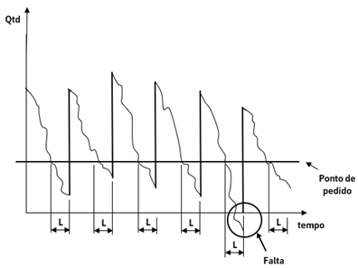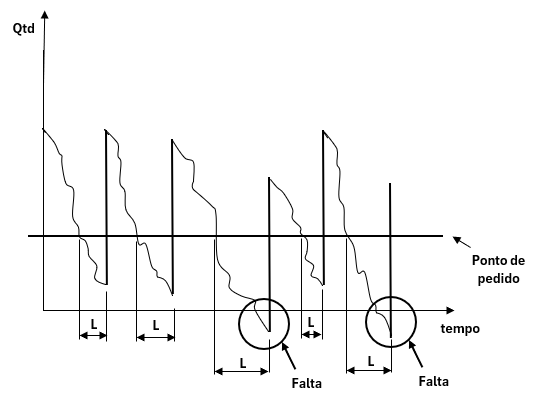 Com a demanda variando ao longo do tempo, hora se terá um maior consumo, hora se terá um menor consumo. Com o ponto de pedido fixo em uma quantidade qualquer, e o tempo de reposição (L) constante, pode ocorrer que em alguns momentos se consuma mais do que o estoque está preparado para atender, e antes que ele seja abastecido, o que causará a falta de material no estoque.